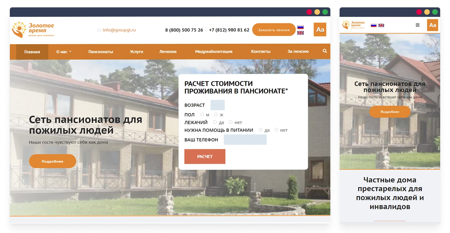 Сайт пансионата для пожилых людей
